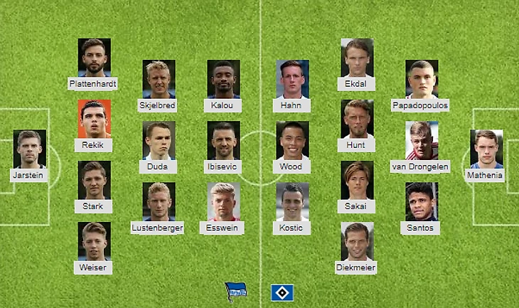 Возможные потери: Гамбург: Юнг, Тёльке, Гуаида, Янйичич, Н. Мюллер, / Герта: С. Лангкамп, Дарида, Харагути, Леки, Шибер