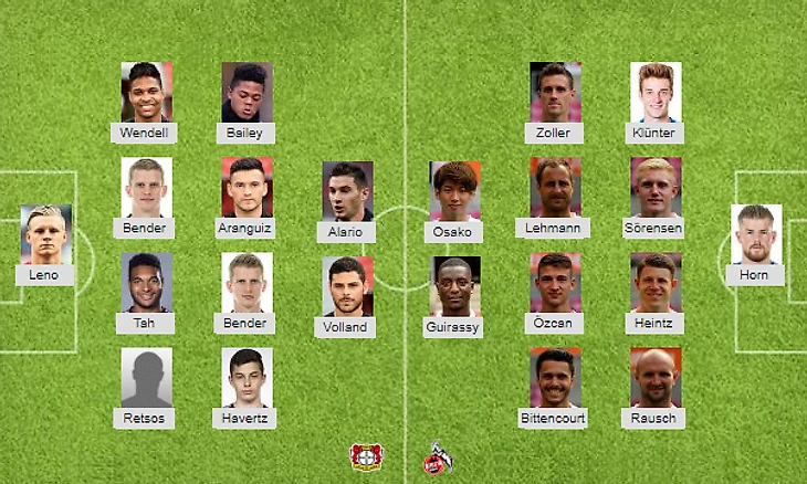 Возможные потери: Байер: Едвай / Кёльн: Й. Гектор, Хёгер, Хёгер, Нарти, Риса, Кордоба, Писарро, Риссе