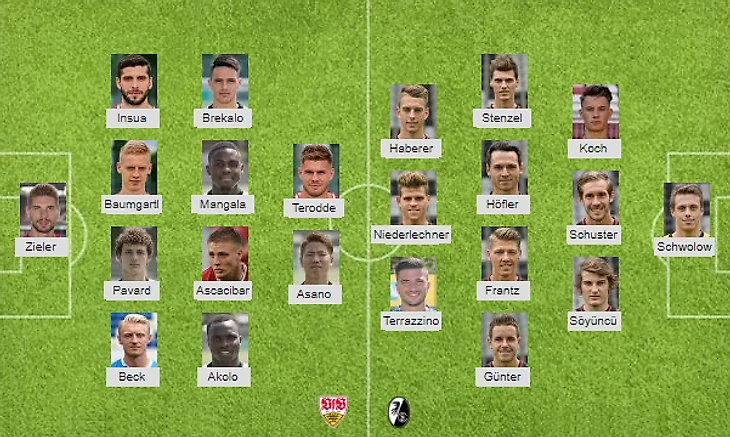 Возможные потери: Штутгарт: А. Майер, Аого, Баштубер, Камински, Карлуш Мане, Гентнер, Мангала, М. Циммерман, Донис / Фрайбург: Гульде, Кемпф, Линхарт, Нидермайер, Мефферт, Сьерро, Гуэде
