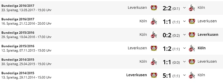 *Gesamtbilanz – общий баланс, Нeimbilanz - баланс игр дома, Remis - ничьи, Siege - победы, Тоге - голы