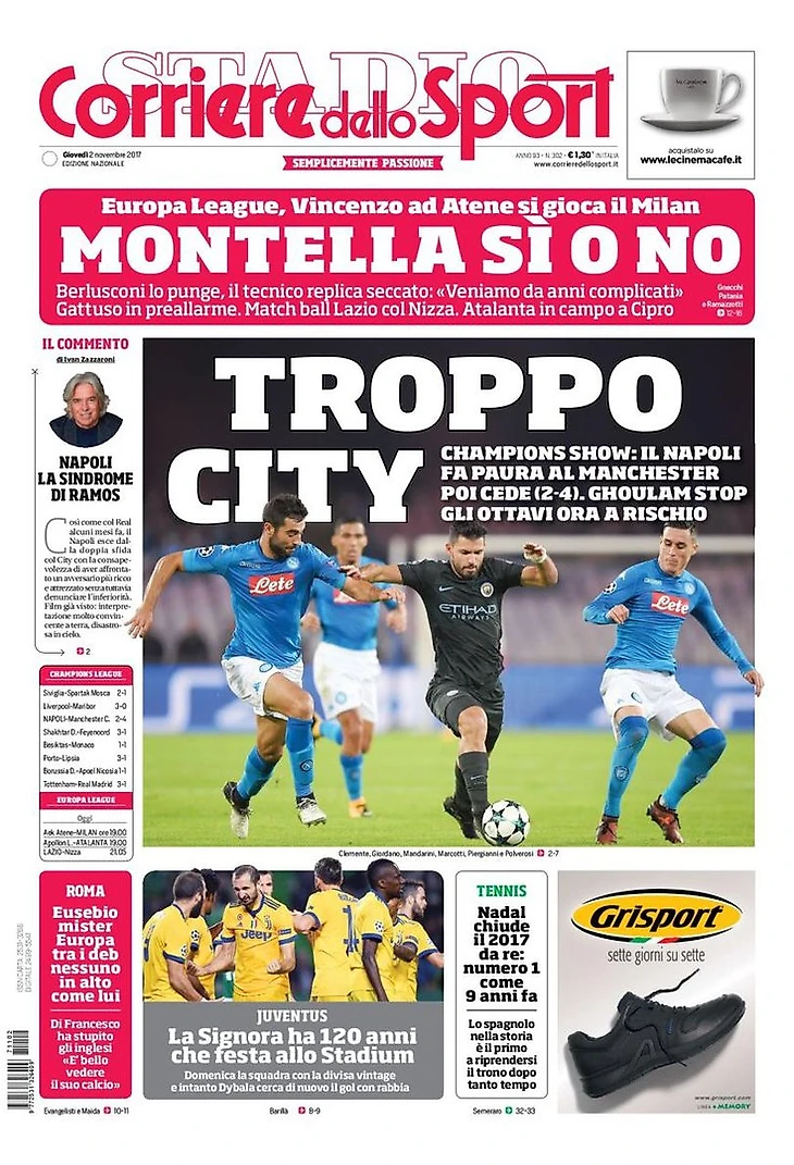 Слишком «Сити». Заголовки Gazzetta, TuttoSport и Corriere за 2 ноября