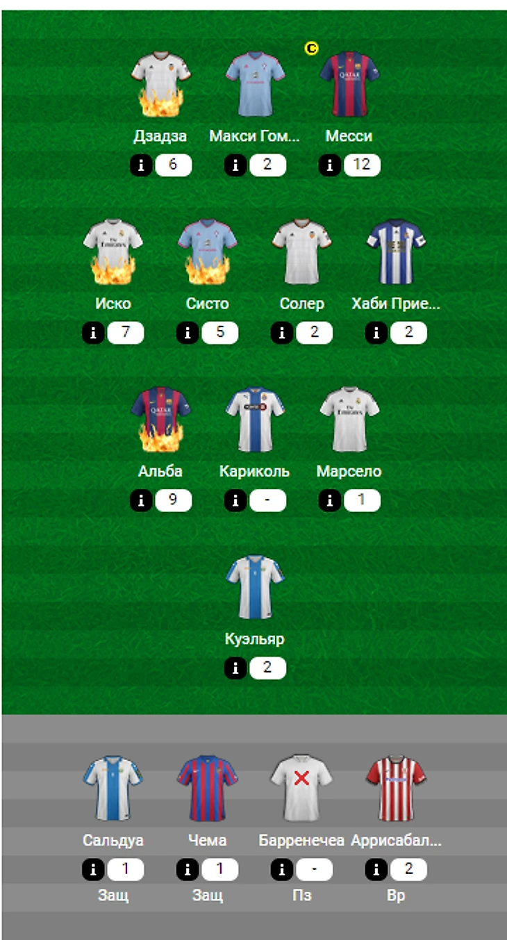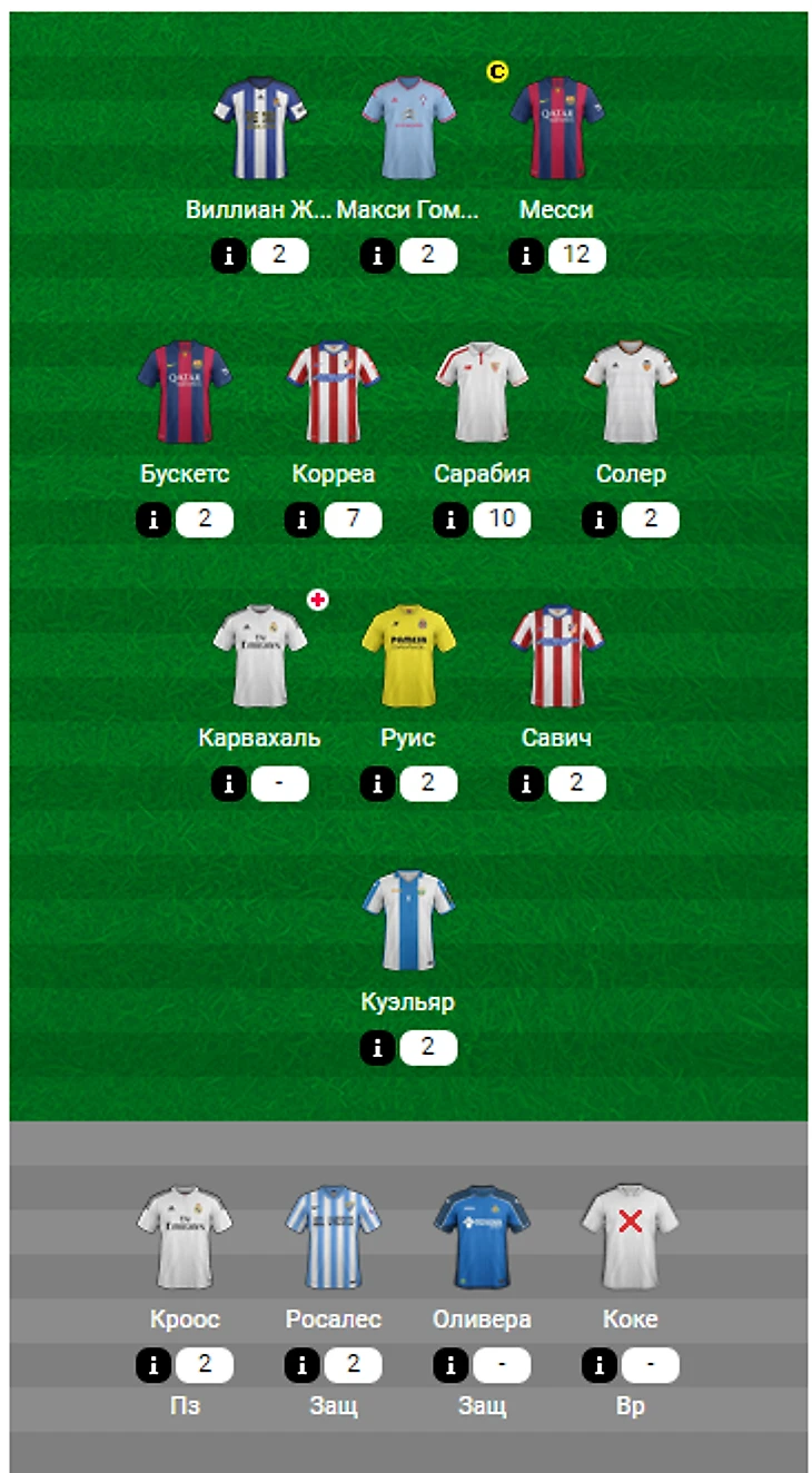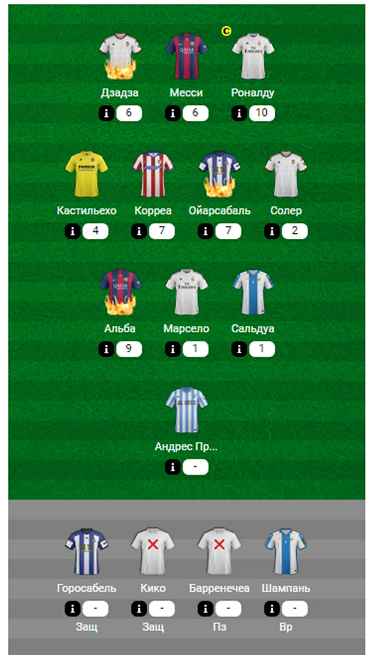 Нда.. Два кипера по 4.5 - это конечно лютая экономия. Особого маневра нету, поэтому скидываем Корреа. Атлетико забарахлил, да и Корреа самый дорогой игрок из твоего центра поля.
