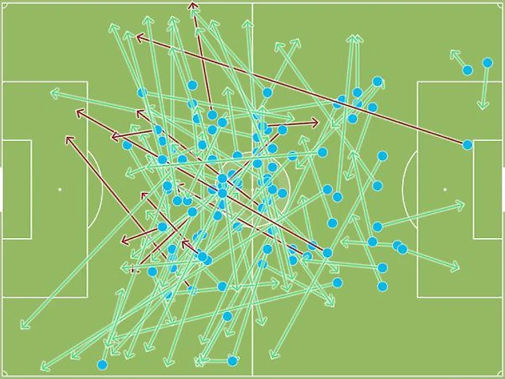 Но лучшим на поле был все-таки Паредес. 103 передачи, карта передач аргентинца поражает симметрией, вот что такое диспетчер.