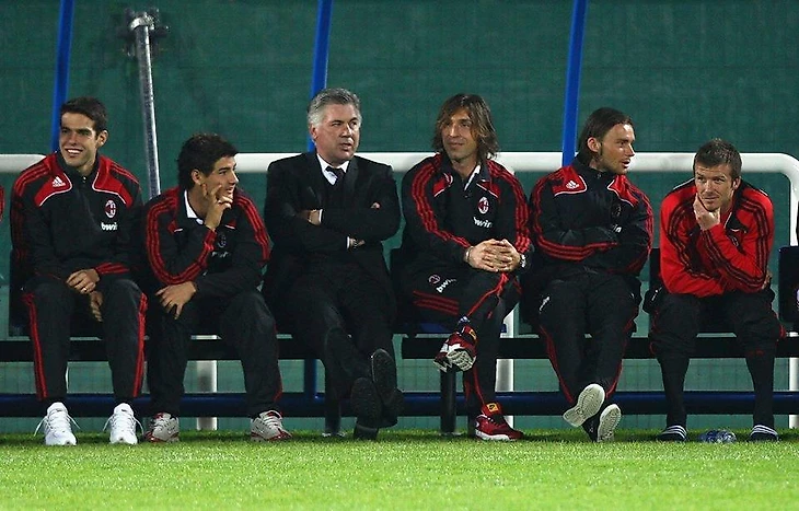Карло Анчелотти с Кака, Пато, Пирло, Янкуловским и Бекхэмом, конец 2000-ых.