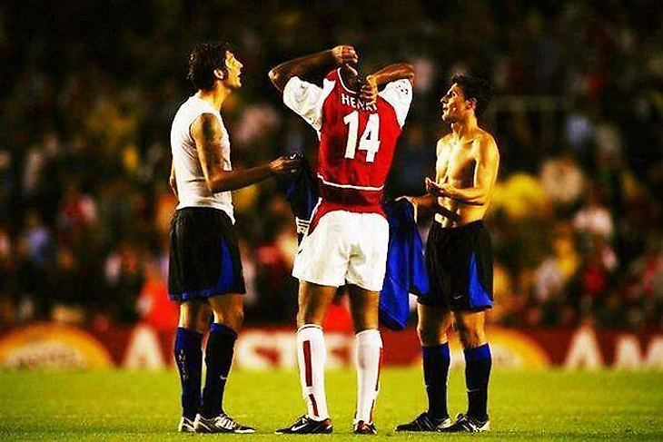 Матерацци и Дзанетти спорят кому достанется футболка Тьерри Анри, 2003.