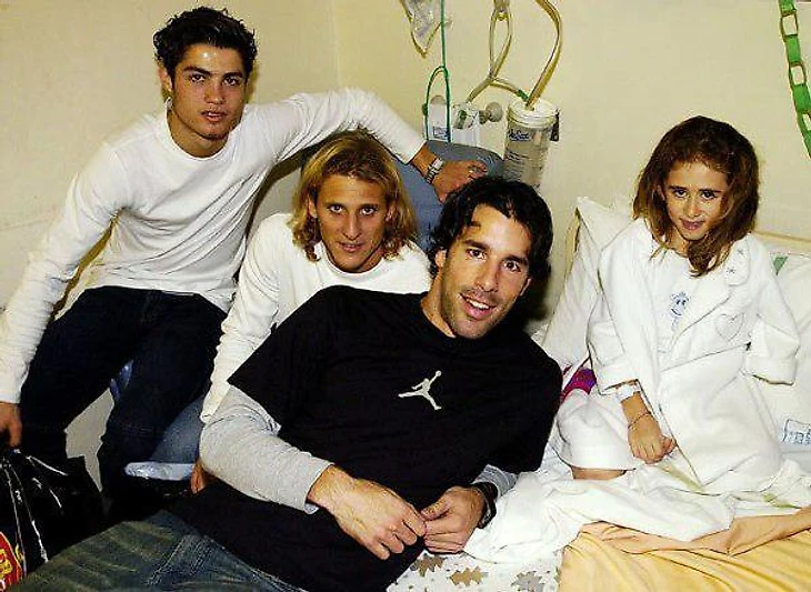 Криштиану Роналду, Диего Форлан и Руд ван Нистелрой в больнце с целью благотворительной акции, 2003.