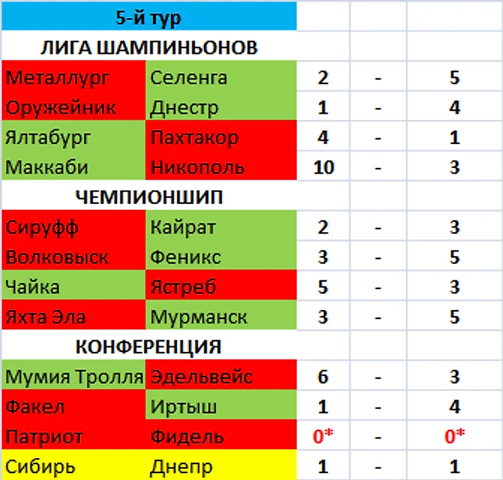 Завершились матчи 5-го тура