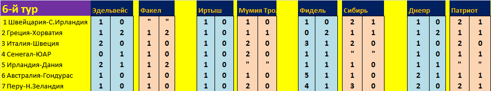Швейцария-С.Ирландия 3-0 Сируфф, Мурманск, 3-1 Селенга и 1-2 Оружейник