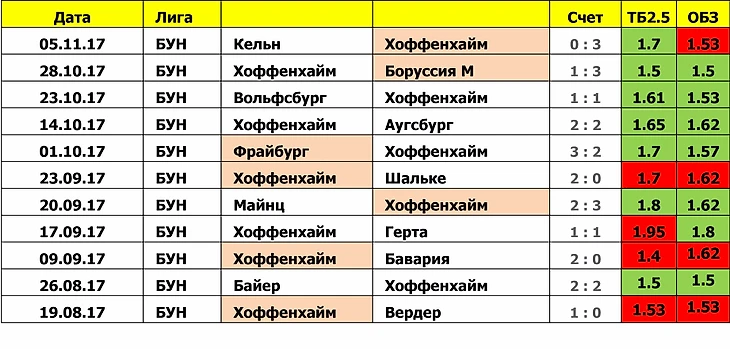 «Хоффенхайм» провел образцово-показательную игру против «Кельна» в гостях, продолжил пробивать ТБ 2.5 (5-й матч подряд) и можно сказать выиграл особо не напрягаясь, тем более Нагельсманн еще дал отдохнуть некоторым футболистам основы. Хотя «Кельн» мог забить, будь поточнее их форвард Герасси. Но 0 : 3. Следующий матч с «Айнтрахтом», который забрался высоко для себя за счет того, что забивал в конце и выигрывал по сути ничейные матчи (так было с «Вердером», «Штутгартом», «Ганновером» все закончились победой 2:1), а мы знаем, «Хоффенхайм» страдает тем, что частенько пропускает в конце. Так что будет на что посмотреть.