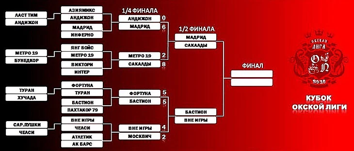 Кубок выходит на финишную прямую. Практически на последнем вираже встретились Метро и Сакалды. Команда Метро переживает не лучшие времена, да и госпожа Фортуна не балует ребят. Сакалды не выглядели в игре на столько сильнее, как отразилось в итоговом счёте. Злым гением для Метро стал Камилов, который, подключаясь из глубины, постоянно находил момент для точного удара. Уже в первом тайме Камилов оформил хет-трик. Ну и важным был третий мяч в игре, забитый Асатилаевым на добивании с острейшего угла. После него стало понятно, что Метро будет очень тяжело перевернуть игру. Учитывая, что в атаке команда Метро не реализовывала те моменты, которые создавались. Когда счёт стал 0:6( причём гол был хорош: Акимов головой сбросил мяч под удар Асатилаеву), команда Метро перестроила игру. Гольцов передвинулся ближе к линии атаки. Команда Метро была полна решимости организовать гол престижа. Более того, оставшийся отрезок команды закончили вничью 2:2. Сначала самый техничный игрок Метро Кулаков на фланге разобрался с соперниками и выкатил мяч на Гольцова. Затем покер оформил Камилов. Далее Ватанов прямым ударом с углового удара поразил ворота Метро. Ну, а точку ставит Гольцов, проталкивая мяч в сетку с близкого расстояния. Сакалды выходит на Мадрид в полуфинале. Думается, что полуфинал может получиться упорным, хотя Мадрид смотрится явным фаворитом.