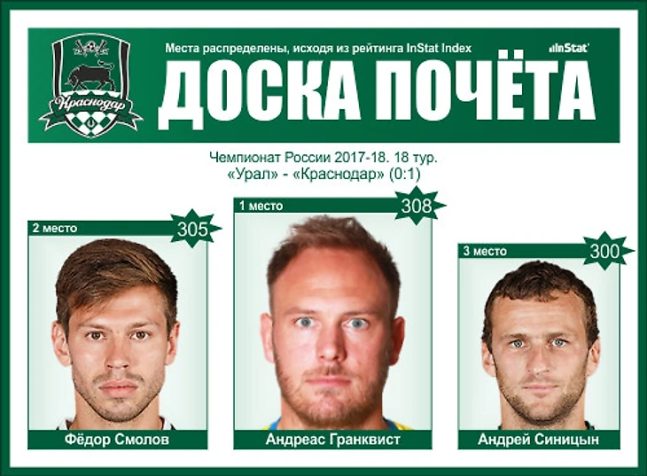 Тройка лучших игроков «Краснодара» в матче против «Урала»