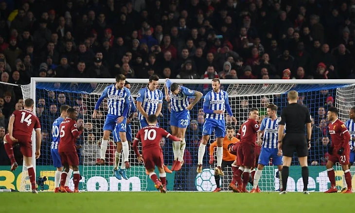 Волею календаря 14 и 15 туры "Ливерпуль" проводил на выезде. После уверенной выездной победы над "Сток Сити", "Красные" отправились на юг Англии, где их поджидал неуступчивый и обозленный "Брайтон". Неуступчивый, потому что потерпел лишь одно поражение дома (еще в 1 туре от "Манчестер Сити"), а обозленный из-за несправедливого поражения на "Олд Траффорд" в рамках прошлого тура. Юрген Клопп в очередной раз перетряхнул состав. Центр обороны предстал в очень экспериментальном сочетании. Жоэль Матип выбыл примерно на месяц, в его отсутствие место рядом с Ловреном занял Эмре Джан, которому эта позиция знакома еще по работе с Бренданом Роджерсом. Свой третий шанс в АПЛ получил Эндрю Робертсон, а Александер-Арнольд предсказуемо поменял Гомеса. Из великолепной атакующей четверки немецкий тренер на сей раз оставил на скамейке Мане. Матч начался в достаточно спокойном темпе. "Ливерпулю" не хватало изобретательности у чужих ворот, а игроки "Брайтона" откровенно робели и сумели в первой половине игры создать лишь один момент. Это Глен Мюррей после прострела с левого фланга наносил удар из пределов штрафной, но Джорджиньо Вейналдум совершенно неожиданно игравший третьего центрального защитника (то ли еще будет, учитывая травматичность наших оборонцев) помешал нанести акцентированный удар. Зато мерсисайдцы своими немногочисленными моментами пользовались исправно. Эмре Джан при розыгрыше углового почему то оказался неприкрытым, что стоило "Брайтону" пропущенного гола. Отметим, что "Красные" стали часто забивать после розыгрышей угловых - очевидно Юрген Клопп уделяет много времени работе над стандартами, а Массимо Каррере в свою очередь надо уделить этому внимание.