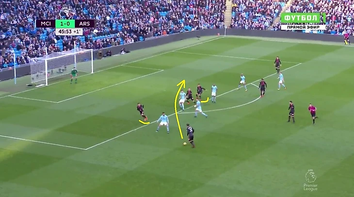 2) Проваливался в построении искусственного офсайда. В конечном счете, именно ошибка Колашинаца привела к пенальти на Стерлинге. Можно сколько угодно рассуждать о склонности юркого англичанина падать при любом контакте, но всю кашу заварил именно босниец. Колашинац застрял в полупозиции, не успев выйти на линию с другими защитниками и при этом не побежав за Стерлингом. Тот воспользовался ошибкой левого фулбека «канониров» и умчался на рандеву с Чехом. А потом был фол Монреаля и пенальти.