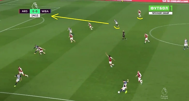 Еще один камень в огород фулбека «Арсенала»: он все еще слабоват в тактическом плане. Примеров его тактических провалов – море. Вот лишь один из них, из матча с «Вест Бромвичем»: Гарет Барри делает кросс в штрафную, Колашинац зевает рывок Ливермора, который забегает за спину Монреалю. В результате Монреаль остается наедине с двумя нападающими. Возможно, кому-то покажется, что Ливермор – игрок Монреаля, но ведь известно простое правило: когда один центрдеф прерывает навес, другой его страхует. Мустафи не успел на перехват, его подстраховал Монреаль. А вот Монреаля не подстраховал никто. То, что «Вест Бромвич» не забил в этом эпизоде – чистая случайность.
