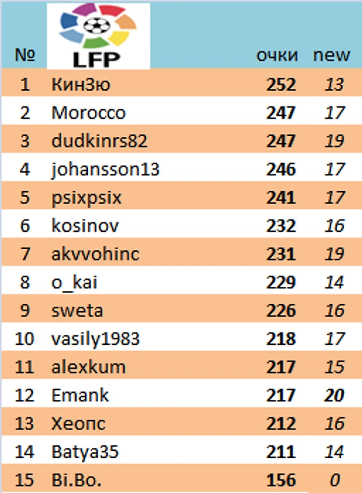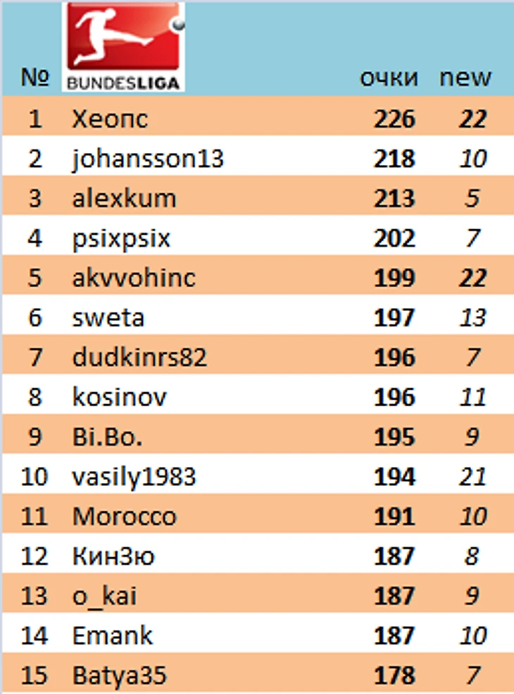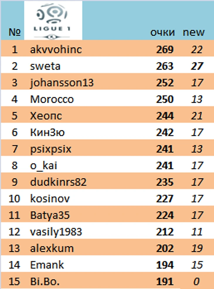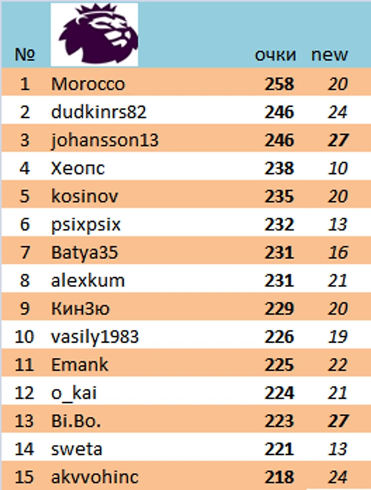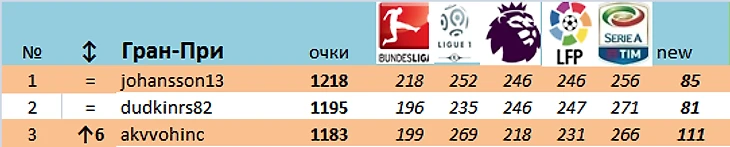 В АПЛ селфи на фоне Биг Бена сделали johansson13 (2-ю неделю подряд) и Bi.Bo. (по 27 очков)