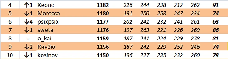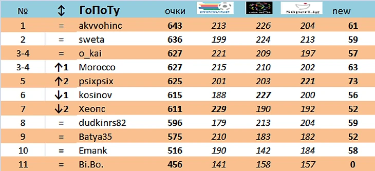 akvvohinc продолжает лидировать. Было +5 - стало +7