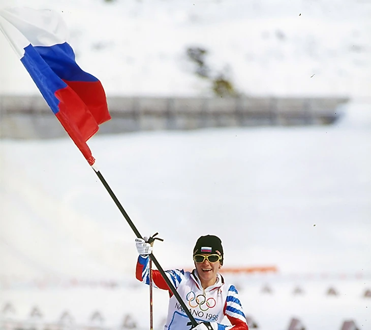 Лариса Лазутина красиво финишировала первой в эстафете 4x5 км на Играх-98 в Нагано. Там русские лыжницы взяли 5 золотых медалей из 5.