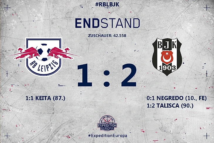 На второй тайм футболисты «Лейпцига» выходили зная, что в параллельном матче «Порту» уже ведет 3:0 в матче против «Монако», поэтому начало тайма было вполне предсказуемым. РБ обрушил шквал атак на ворота «Бешикташа». Августин пробил мимо (’46), Вернер дважды ударил мячом в Зенгина (’47; 52), били также Кейта (’53) и Кевин Кампль (’57).