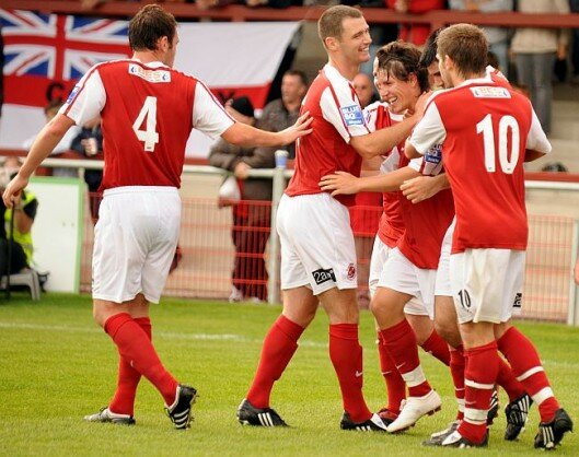 В Blue Square в этом сезоне выступает интересный клуб. На поле стадиона "Хайбери" выходят парни в красных майках с белыми рукавами и белых трусах. В составе есть люди с фамилиям Райт и Виера.