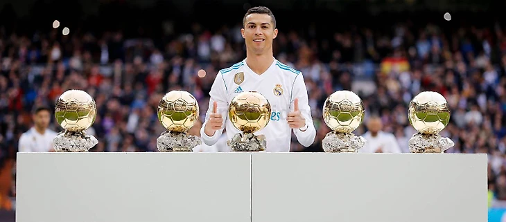 Роналду перед матчем вышел к болельщикам "Сантьяго Бернабеу" с показом своего пятого "Золотого Мяча". Не стоит забывать, что мы с вами наблюдаем за футболистом, который устанавливает величайшие рекорды в истории лучшего в мире футбольного клуба.