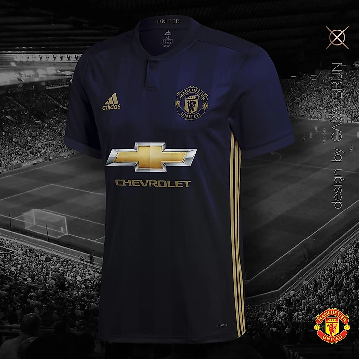 Как мы уже знаем, новая третья форма "Манчестер Юнайтед" в сезоне 2018-2019 будет темно-синего цвета с золотыми вставками. Аргентинский дизайнер Casa Bruni создал макет того, как могла бы выглядеть новая форма "Юнайтед" в следующем году: