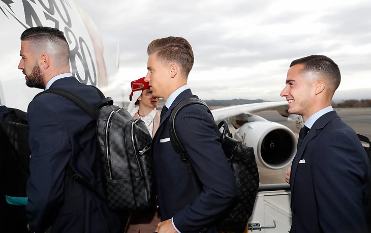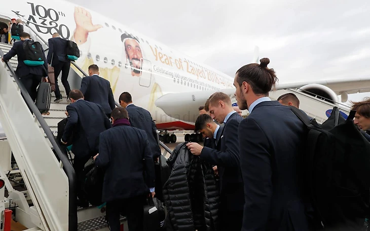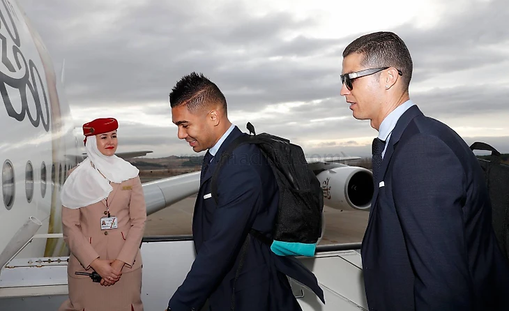 Спустя несколько часов после убедительного разгрома Севильи на Сантьяго Бернабеу, Королевский клуб из аэропорта столицы Испании вылетел в Обеденные Арабские Эмираты, где в столице арабского государства Абу-Даби будет защищать свой титул Клубного Чемпиона Мира.