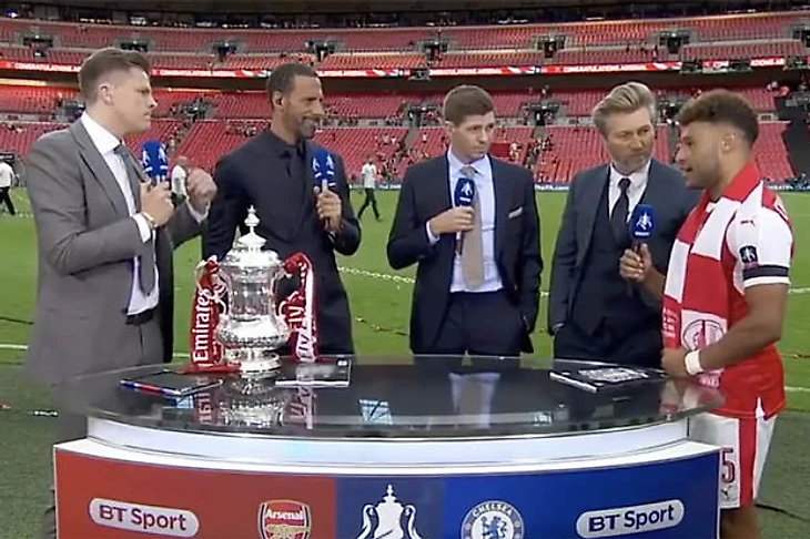 «Арсенал» только что обыграл «Челси» в финале Кубка Англии. К стойке телеканала BT Sport, где уже стояли ведущий Джейк Хамфри, Рио Фердинанд и Стивен Джеррард, подошел Алекс Окслейд-Чемберлен, в матче с «Челси» примеривший на себя роль левого латераля. Хамфри сказал, что бывший защитник «МЮ» во время просмотра игры отметил Окса, «наконец нашедшего свою позицию». В ответ «канонир» поблагодарил Рио, но сказал, что он всегда предпочитал «играть как Стиви Джи». По-моему, это все равно, что сказать девушке, что она очень похожа на твою маму, которую ты сильно любишь. Через три месяца Чемберлен стал игроком «Ливерпуля».
