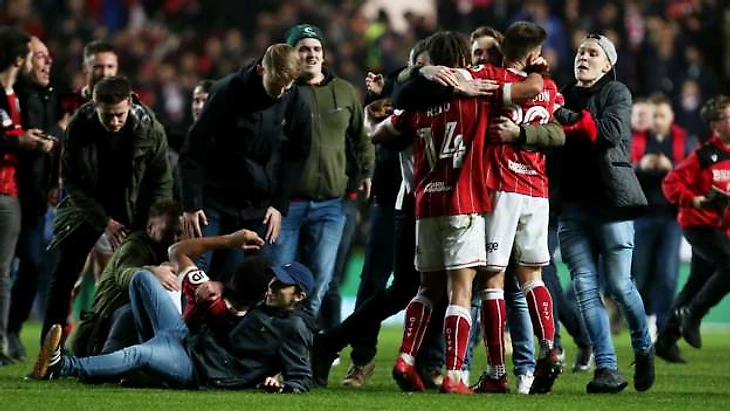На фото: болельщики "Бристоля" выбежали на поле после победы команды над "Манчестер Юнайтед".