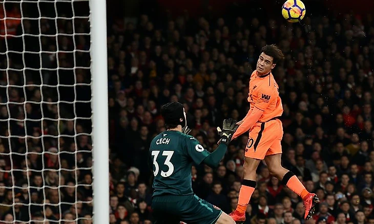 19-й тур английской премьер-лиги открывался сразу центральной игрой тура в которой должны были сойтись в бескомпромиссной борьбе "Ливерпуль" с "Арсеналом". В первом круге мерсисайдцы разделали своего оппонента "под орех" со счетом 4:0 и подопечные Арсена Венгера были полны решимости доказать, что августовская неудача носила случайный характер. Юрген Клопп предсказуемо выбрал самый сильный состав на игру, не проводя экспериментов аналогичных матчу против "Эвертона". Непривычной была лишь оранжевая форма "Ливерпуля", в которой команда с берегов Мерси походила на сборную Голландии. Арсен Венгер со своей стороны сделал один любопытный ход - вместо отлично проводящего сезон Сеяда Колашинаца, французский специалист доверил место в составе юному Мэтленд-Найлзу, который должен был противостоять грозному Мохаммеду Салаху. В последние годы противостояния "Канониров" и "Красных" дарят настоящее зрелище болельщикам - не стал исключением и прошедший матч. С первых минут соперники включили высокие скорости, не задерживаясь в центре поля. Первые десять минут несколько четче работали с мячом хозяева поля, но это и неудивительно, ведь "Ливерпуль" в этом розыгрыше АПЛ еще ни разу не забивал в первую пятнадцатиминутку. Спустя пятнадцать минут гости начали оживать и атаковать более осмысленно. Может тому причиной было заколдованное время, а может быть выход Джеймса Милнера, заменившего Джордана Хендерсона, который дернул мышцу в дебюте игры. "Красные" начали активно встречать соперника в центре поля, здорово работал Эндрю Робертсон на левом фланге. Именно благодаря шотландцу был создан первый момент в игре, но Петр Чех отразил мяч в ближнем углу после удара головой Роберто Фирмино, которому ассистировал Робертсон. Гол что называется назревал и на 26-й минуте Ливерпуль провел первую быструю контратаку в матче, которая стала возможной благодаря потери Мэтленда-Найлза в центре поля. Джеймс Милнер выдал длинный пас на Салаха, который при помощи рикошета от Лорана Косьелни переадресовал мяч на голову Филипе Коутиньо и бразилец перебросив Петра Чеха, забил совсем нетипичный для себя гол.