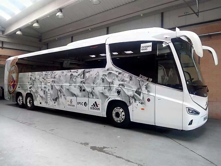 «Реал Мадрид» получил новый автобус еще в 2016 году. Все тот же испанский производитель Irizar предоставил будущему победителю Лиги Чемпионов современную модель i8. В октябре 2017 года он выиграл европейский конкурс на звание лучшего автобуса континента-2018.