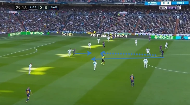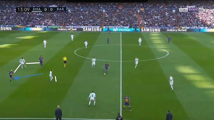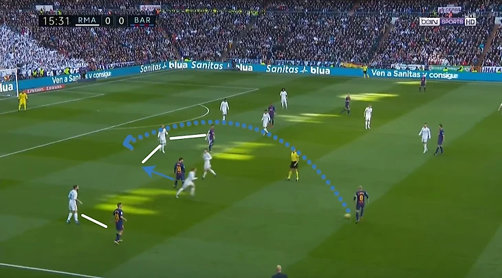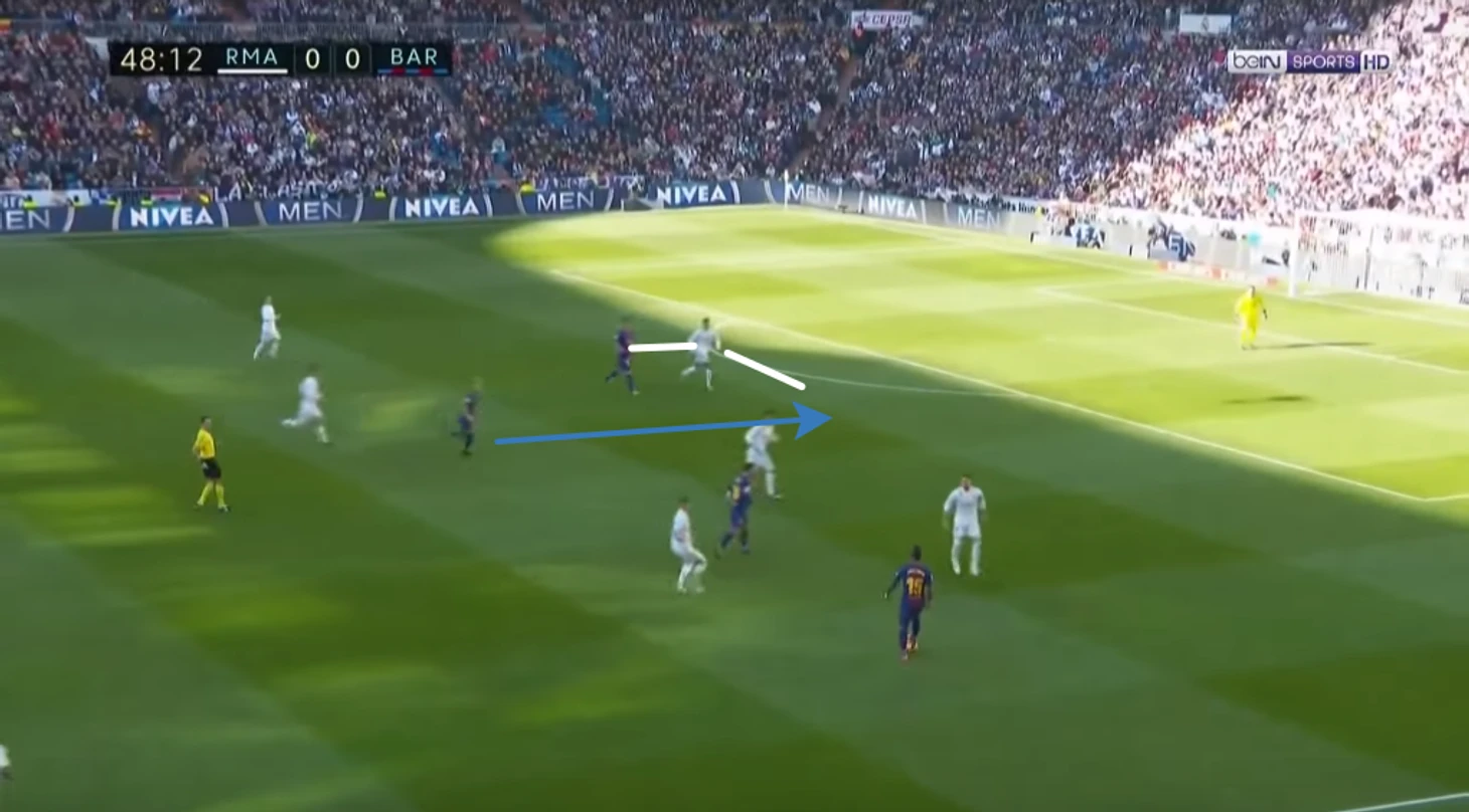 Таким образом, соперники Реала могут получить преимущество в нападении простыми забеганиями, поймав момент, когда крайние защитники находятся высоко, а центральные защитники играют один в один.