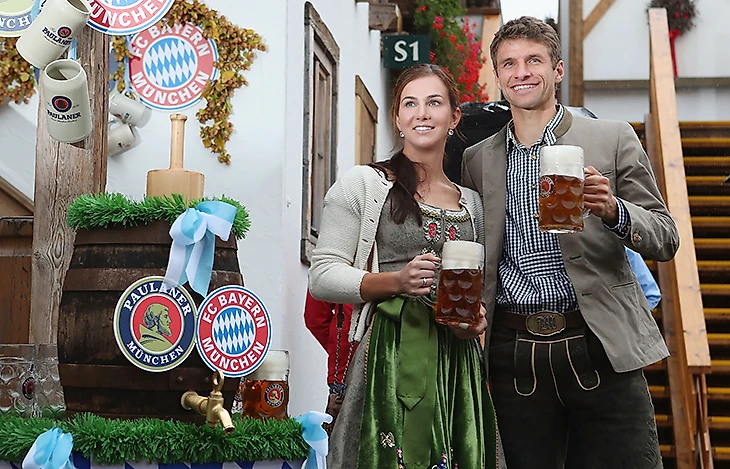 В главном пивном фестивале могут участвовать только мюнхенские пивоварни. Они расставляют на специальной площади в центре города палатки, и самая большая (на 8,5 тысячи мест внутри и 2,5 тысячи снаружи) принадлежит как раз Paulaner – официальному пиву «Баварии». Футболистов и тренерский штаб в национальных костюмах там ждут каждый год.