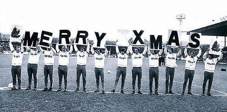 В 1973-ем еще не было Твиттера и игроки «Лидс Юнайтед» позравляли фанатов с Рождеством вот таким образом.