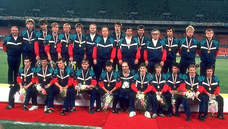Та сборная СССР вобрала в себя все существовавшие у нас в стране футбольные школы - московское "Динамо" Игорь Добровольский, Виктор Лосев, украинская школа из киевского "Динамо" и "Днепра" - Алексей Михайличенко, Владимир Лютый, грузинская школа - Гела Кеташвили, литовская - Арвидас Янонис, Арминас Нарбековас. И тренер Анатолий Бышовец. Попал он в олимпийскую сборную после успеха в юношеском футболе, в частности, победе на Мемориале Гранаткина над немцами Берти Фогса.