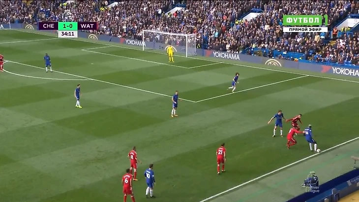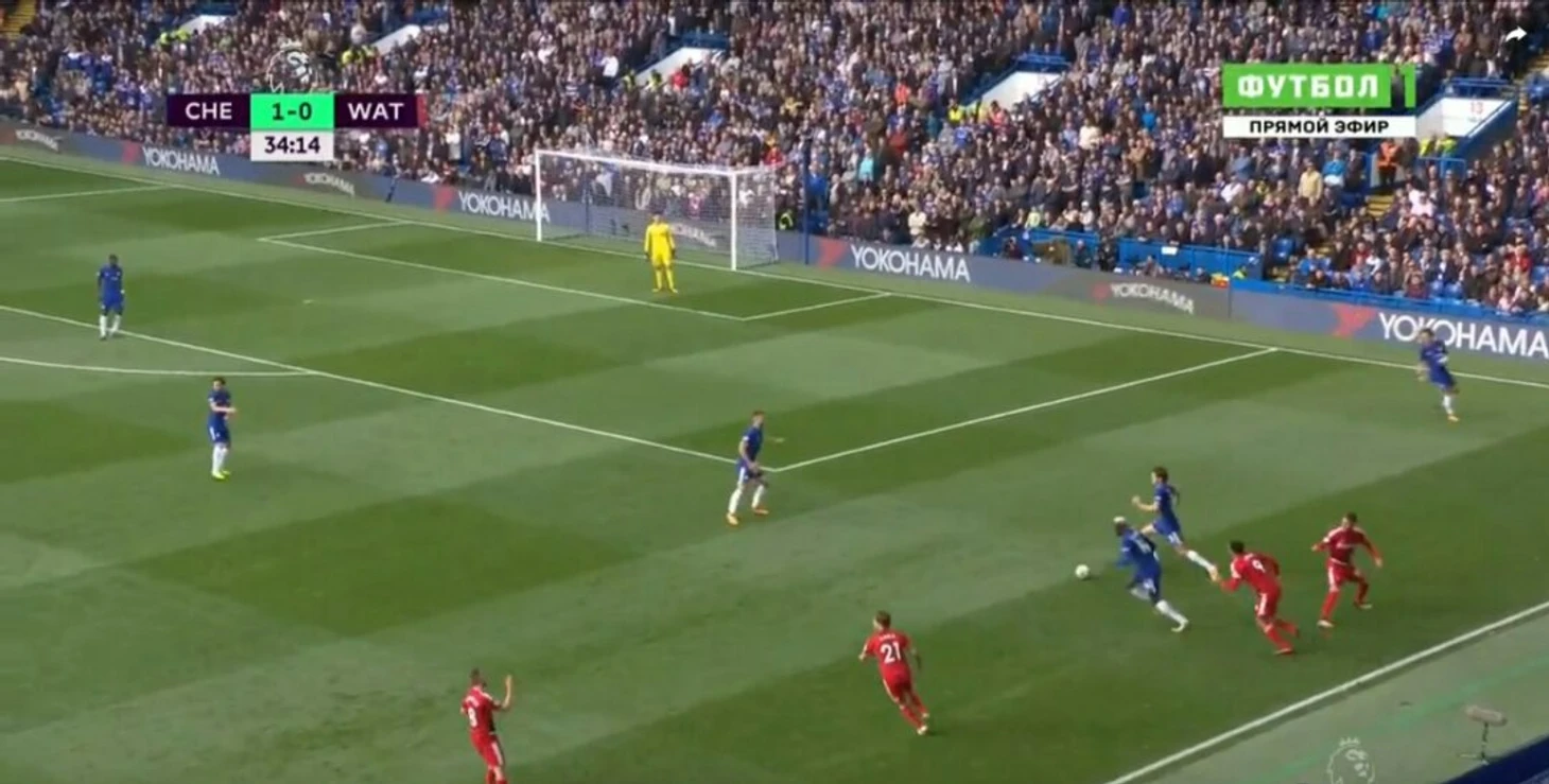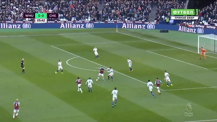 В этом моменте полузащитник решил выполнить не очень уместную навесную передачу, подобную ошибку он допустил и на следующих двух фотографиях.