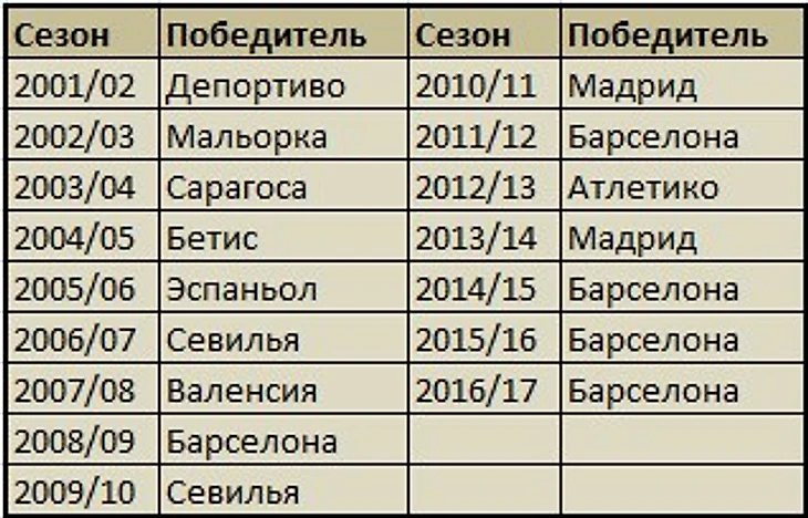 При всех оговорках Кубок Короля был классным соревнованием десять-пятнадцать лет назад. Вот список победителей турнира в прошлое десятилетие и в это: