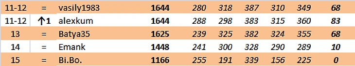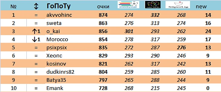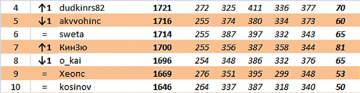 akvvohinc продолжает лидировать. Было +13 - стало +11
