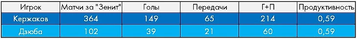 Даже с учетом последнего действительно неудачного полугодия суммарная продуктивность Дзюбы в «Зените» по системе «гол плюс пас» на уровне Кержакова, а это – как ни крути – реально высокий уровень.