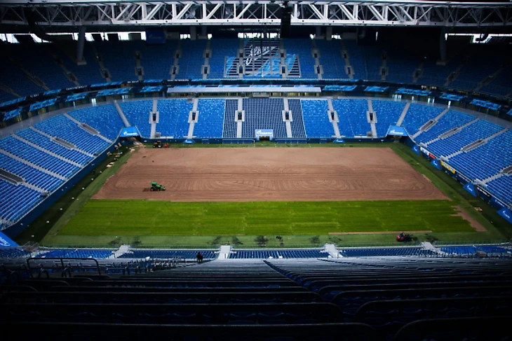Первый домашний матч в новом году «Зенит» проведет через месяц. В 1/16 финала Лиги Европы сине-бело-голубые встретятся с шотландским «Селтиком» 22 февраля. На стадионе «Санкт-Петербург» начали заблаговременно укладывать новый газон.