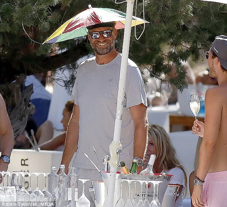 Лето 2017 года также не оставило английские СМИ без жарких фоток того, как отдыхают Улла и Юрген. На этот раз местом действия стала Ибица, а Клопп в компании друзей «позировал» для папарации в шляпе-зонте.