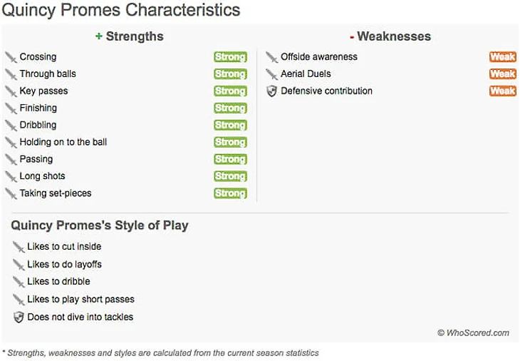 Квинси Промес – с отрывом сильнейший игрок «Спартака» по участию в голевых атаках. В РФПЛ и Лиге чемпионов красно-белые забили 40 мячей, Промес набрал 27 участий, то есть участвовал в 67,5% голевых атак москвичей. Зависимость «Спартака» от Квинси выросла по сравнению с чемпионским сезоном – тогда Промес засветился в 60% голевых атак – и даже страшно представить, как «Спартак» будет жить без индивидуальных проблесков голландца.