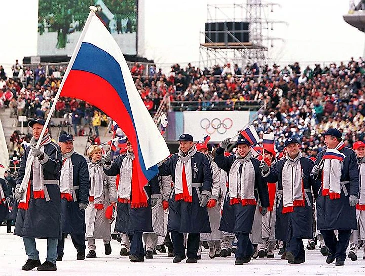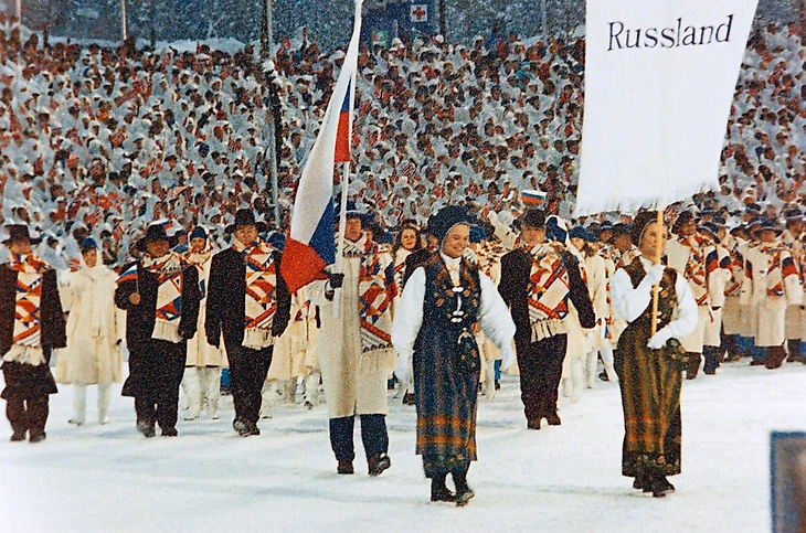 Валерий Медведцев нес флаг МОК, потому что у нас была Объединенная команда, созданная на обломках СССР. Наверное, он стал одной из причин приметы, что знаменосцы ничего не выигрывают (хотя это в реальности совершенно не так). Три медали в Калгари 1998 года, из которых золото в эстафете и два серебра в личных гонках, сменились одним серебром в эстафете.