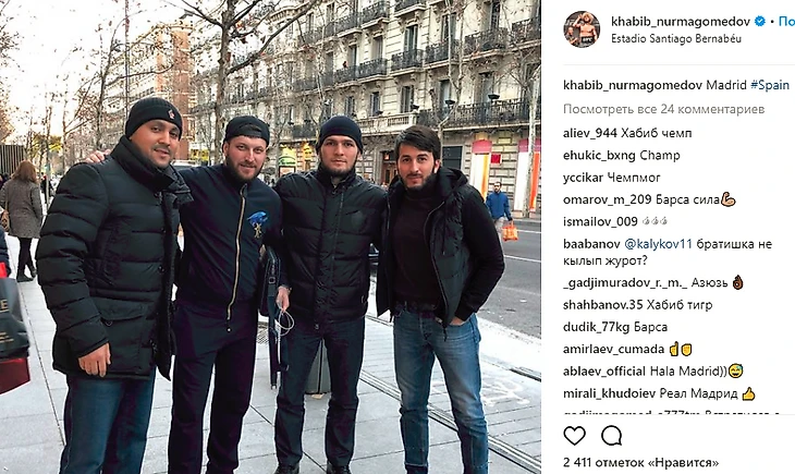 Звезда UFC Хабиб Нурмагомедов рассказал в инстаграме о том, что приехал в Мадрид с друзьями, и посетит домашний матч «Реала» в примере.