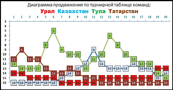Но отчаиваться не стоит, тем более что после прихода с 13-го тура в нашу команду Алмаза ситуация стала улучшаться – в последующих семи встречах одержано 3 победы (до этого в тринадцати играх был всего один выигрыш!) и добыта одна ничья. Если ранее казалось, что сборная Татарстана безнадежный аутсайдер и главный поставщик очков для других команд, то после последних успехов отставание от Тулы сократилось до расстояния «вытянутой руки» - двух очков. В одной победе от нас и Казахстан. Так что есть все шансы покинуть (если сравнивать с настоящим футболом) «зону прямого вылета», а если помечтать, то и виртуальную «зону неудачников плей-офф» :-)