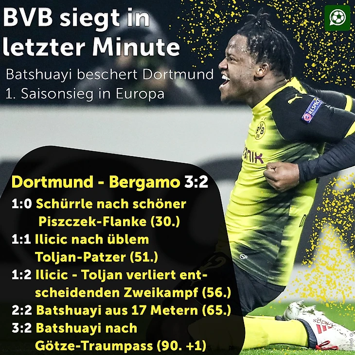 В атаке же «шмели» продолжают развлекаться. Шюррле отмечается результативным действием уже три матча подряд — и вот его покупка за 30 миллионов не выглядит настолько бездарной. Миши Батшуайи забил 5 мячей в 3 встречах — пока замена на посту темного рыцаря «Боруссии» идет ей на пользу. Марио Гетце не только отдает голевые передачи, но и неплохо ведет игру команды впереди. Пока только Марко Ройс явно не обрел себя, но и действовать на позиции разыгрывающего для Вуди не очень удобно.