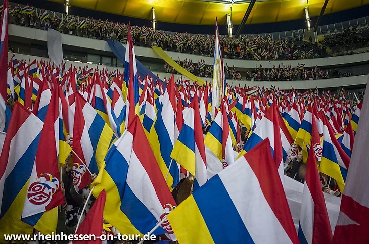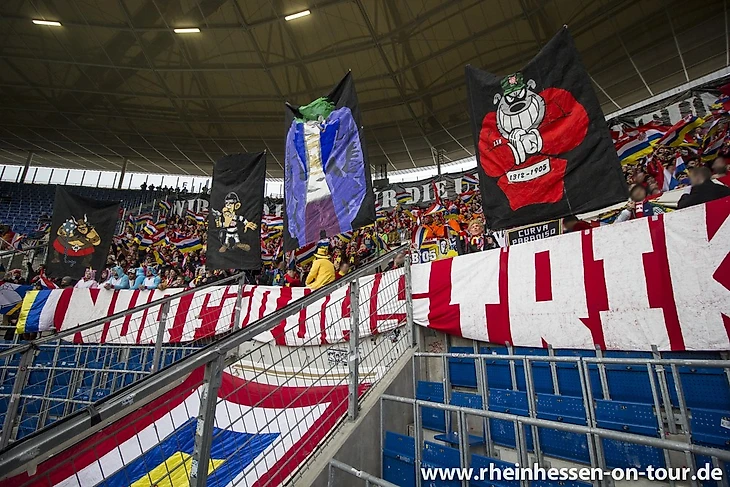 Главным элементом трибунного перфоманса фанаты "Майнца" сделали флажки в цвета клуба. Несколько сотен одинаковых флажков выглядели очень эффектно!