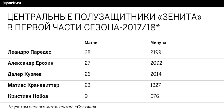 До Новго года Нобоа сыграл всего 586 минут, и это с учетом 113 в кубковом матче с питерским «Динамо» (2:3). Три игры Кристиан провел во втором круге группового этапа Лиги Европы, когда «Зенит» уже почти вышел в плей-офф. А в РФПЛ появился всего дважды – против «Ростова» (0:0) и «Уфы» (3:0).