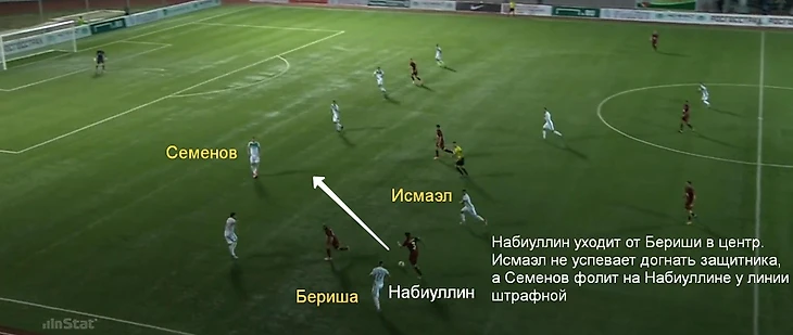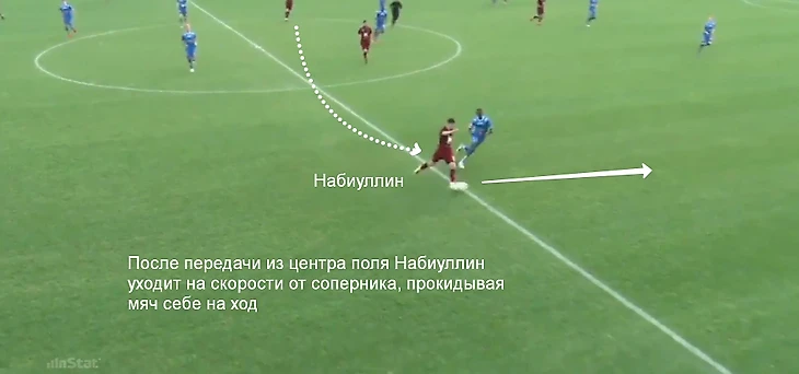 Главный плюс Набиуллина – скорость. По данным Opta, он лишь 7-й левый защитник лиги по удачным обводкам, но это не говорит о его слабости, а лишь подчеркивает особенности дриблинга. Обычно Набиуллин проходит соперников не финтами, а за счет проброса мяча и рывка (и Opta не всегда считает такие действия за обводку).