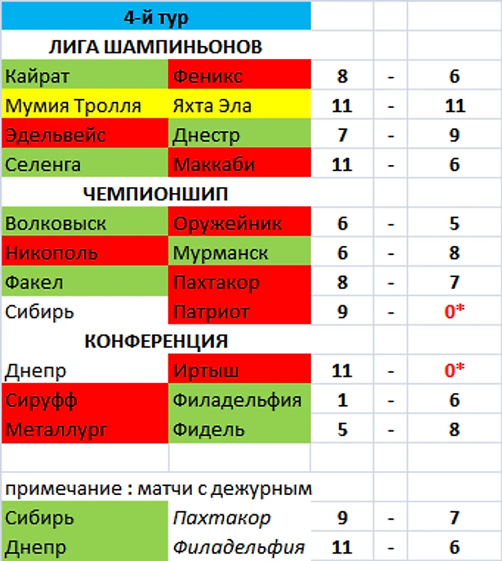 Ставки 4-5 туров. Итоги 3-4-го туров. Календарь на вторник