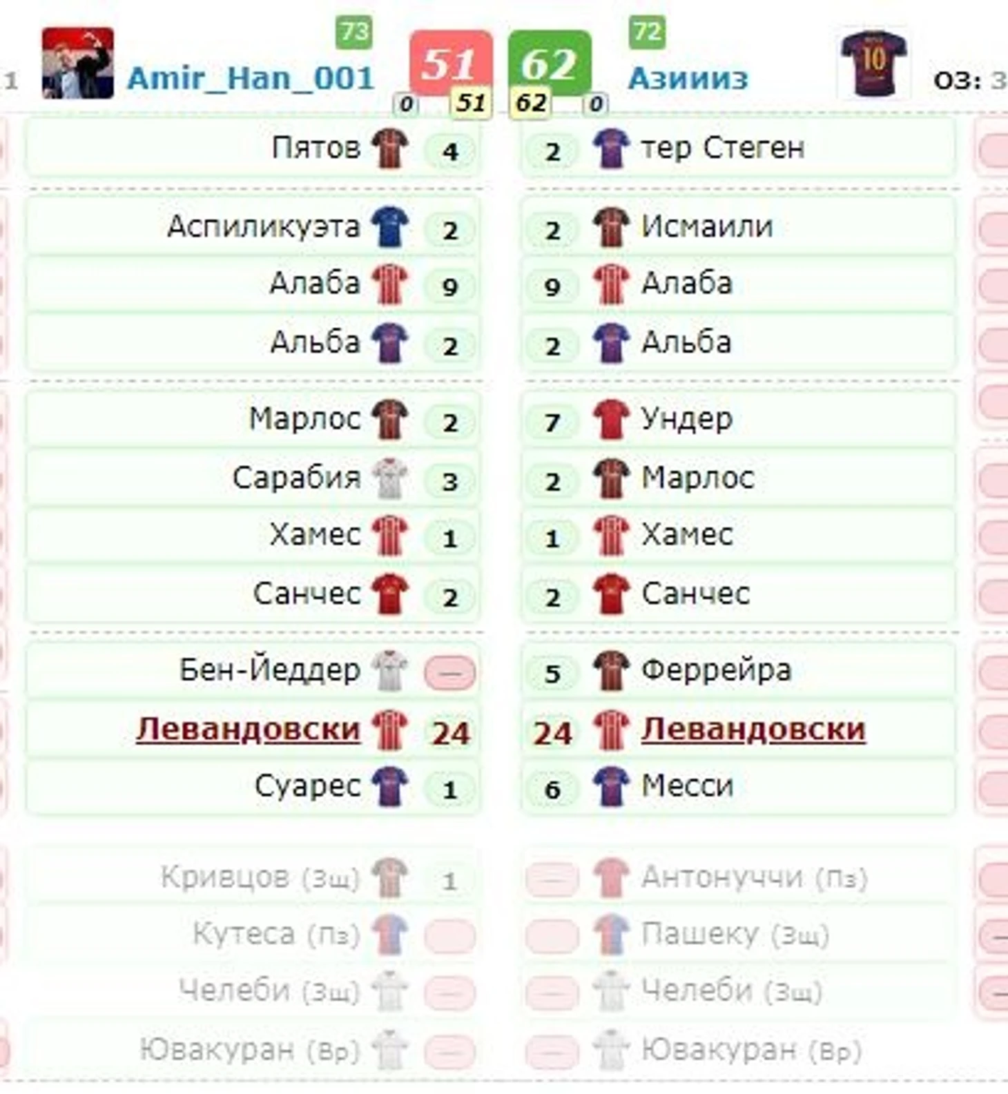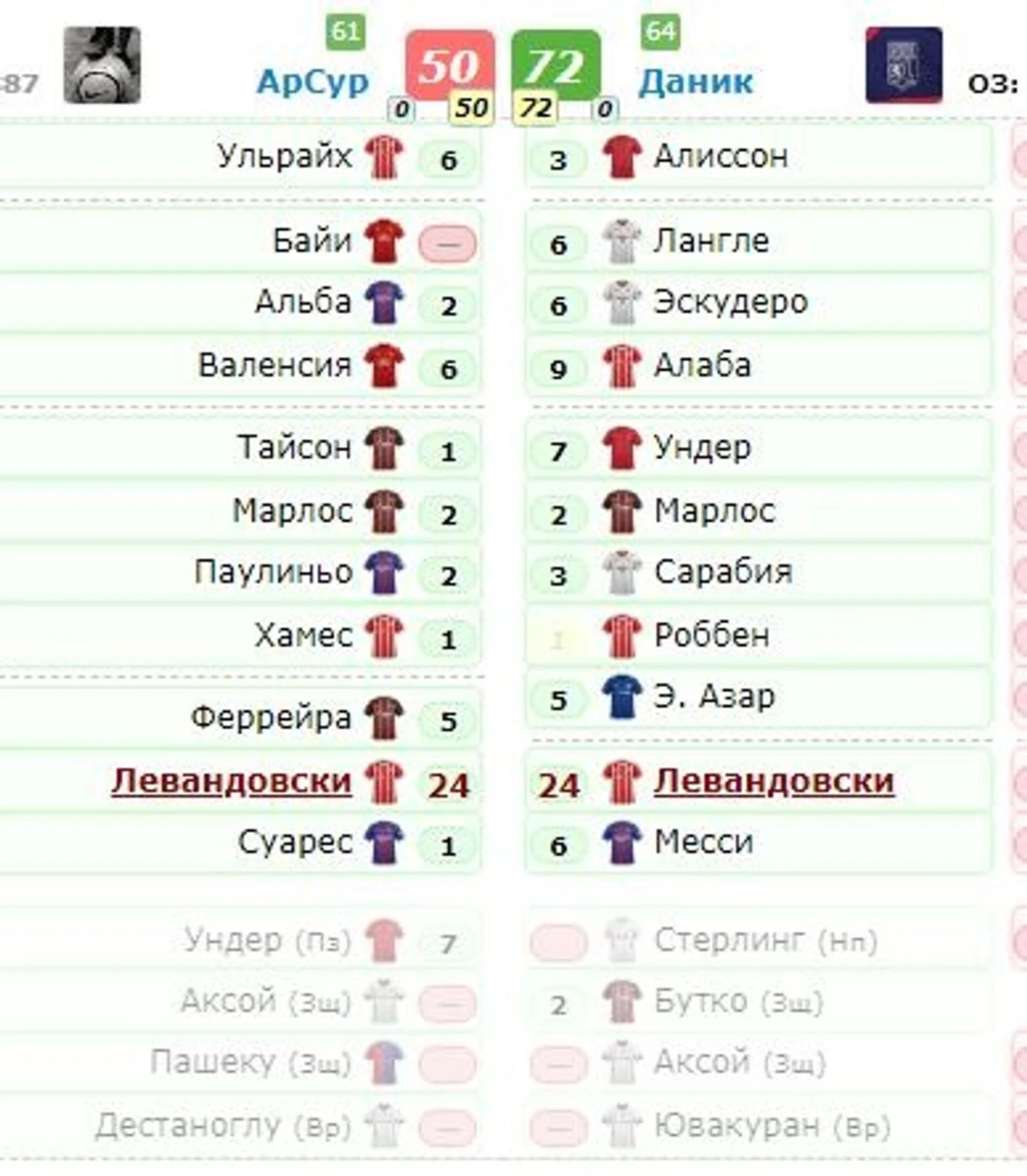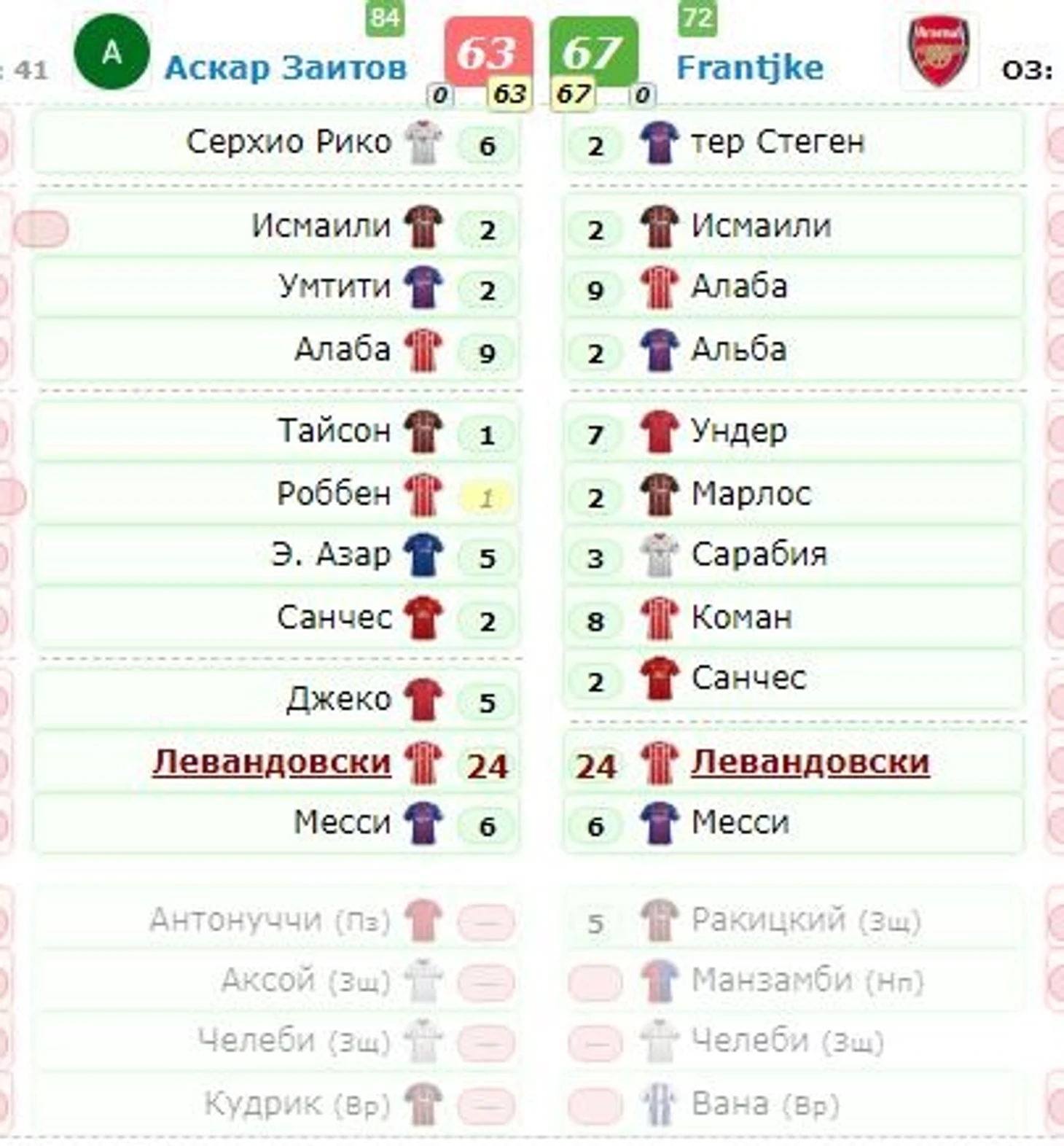 Все результаты тура:http://fantasy-h2h.ru/ucl_2017_po_ball_cup/stage/2/round/1